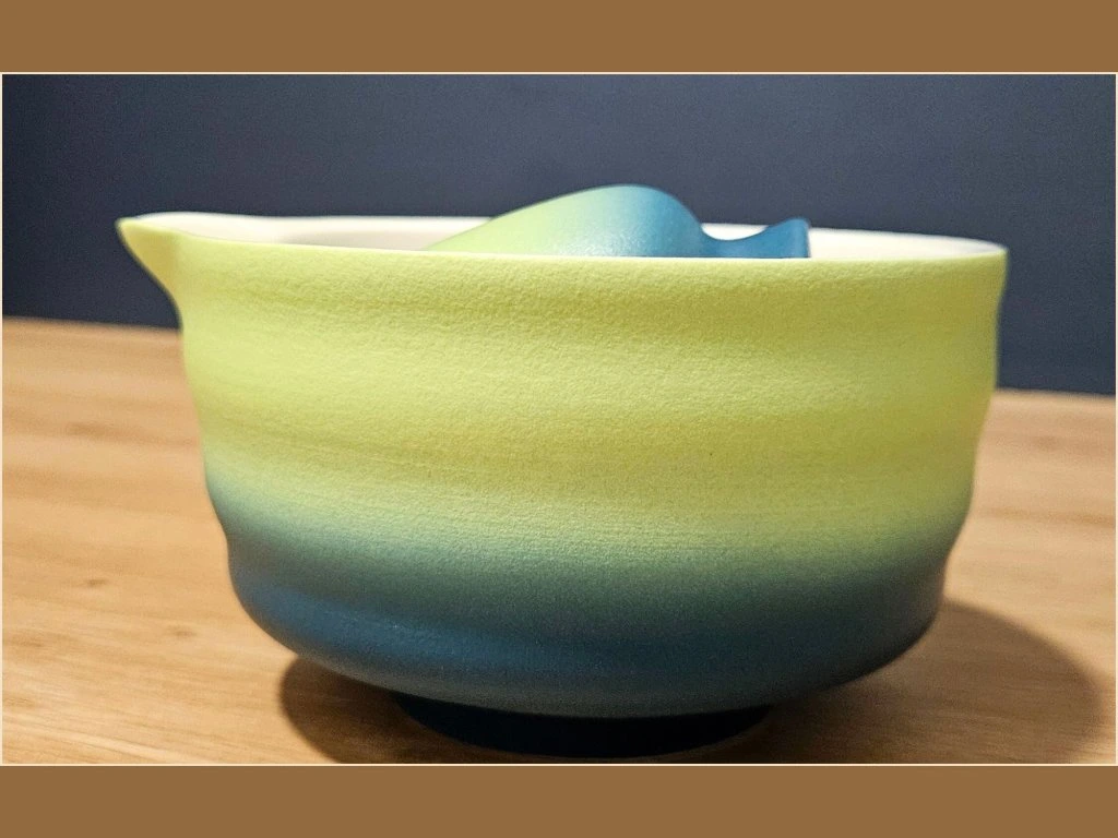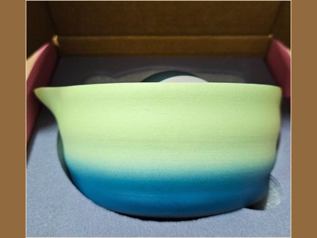Keramický chawan s jemně tvarovaným nalévacím zobáčkem umožňuje čisté a plynulé přelévání matchy bez kapání. Jeho tvar a objem poskytují dostatek prostoru pro pohodlné vyšlehání matchy do jemné pěny, ať už si rituál vychutnáváte sami, nebo jej sdílíte.